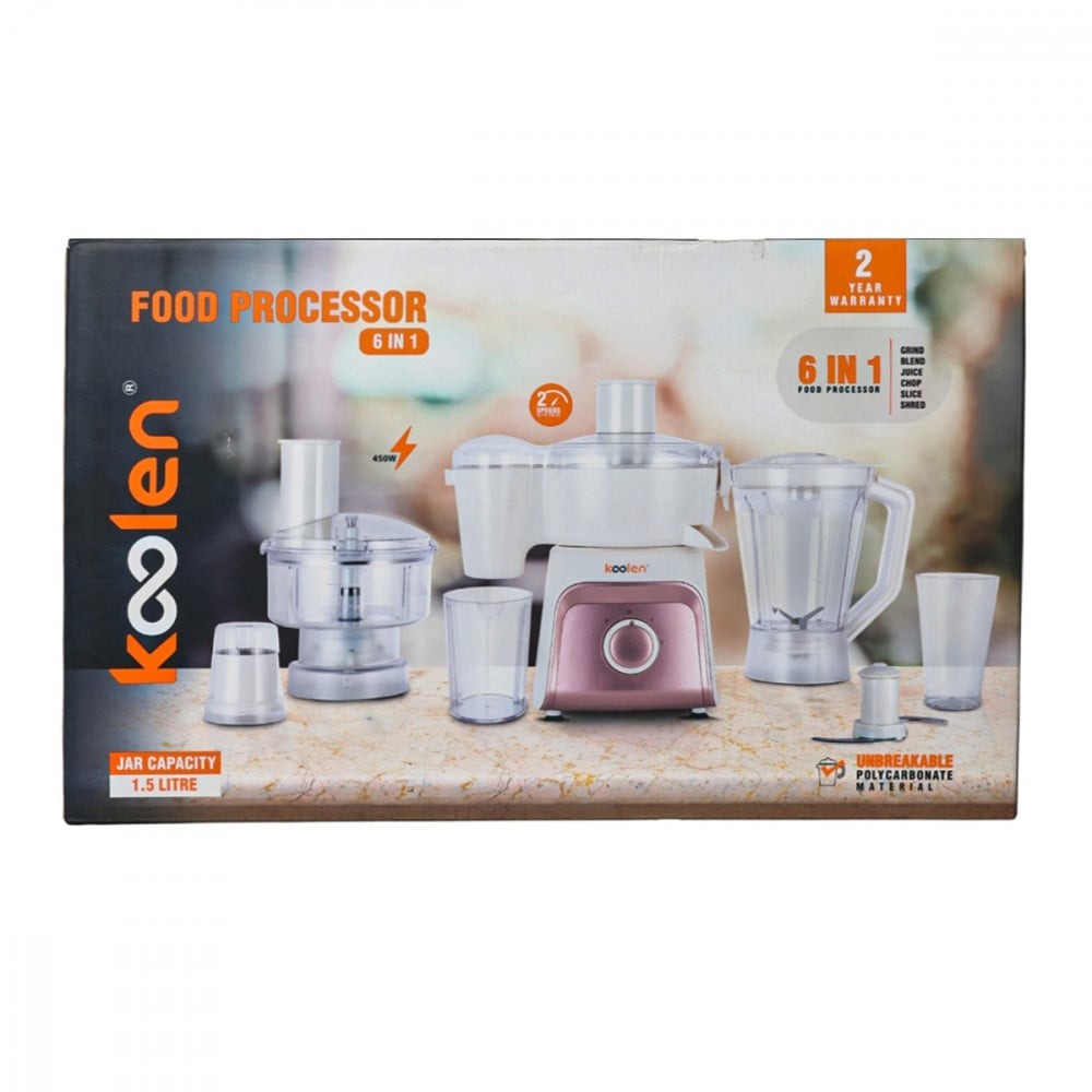 محضرة طعام 6×1 من كولن محضرة الطعام المتميزة بوظائف متعددة ( طحن - خلط -تقطيع - بشر -فرم - عصر )شفرات حادة من الإستانلس ستيلمصنوع من البلاستيك ضد الكسرحماية ضد الحرارةقاعدة ثابتة ضد الإنزلاقالجهد الكهربائي : 220 - 240 فولتتردد 50 / 60 هرتزعدد : سرعتان بخاصية النبضضمان سنتين من الوكيلالقوة : 450 واطسعة الوعاء : 1.5 لترسعة المطحنة : 145 غراممتعددة الوظائفسهلة التنظيفاللون : أبيض مع وردي